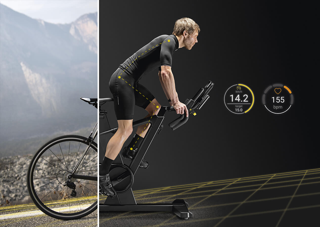 Enjoy the same feeling as outdoor cycling with SKILLBIKE’s RIDING DESIGN which reproduces the biomechanics of outdoor bicycles.? The frame and handlebar are designed to accommodate different riding positions and postures: road, time trial and mountain bike.?