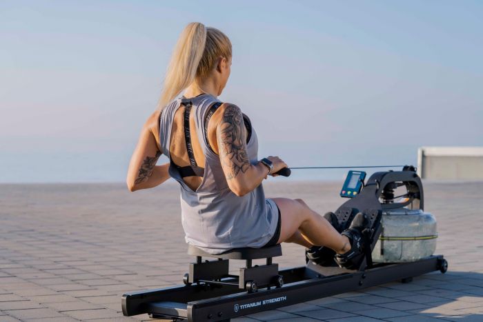 The Titanium Acqua rower also features an ergonomic handlebar for reduced strain.